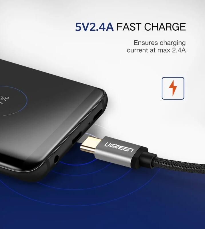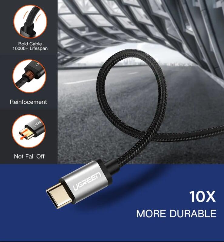 Mua tại TiktokUgreen 30879 Usb 2.0 To Usb C Cable With Nylon Webbing Black 0.5M Us174