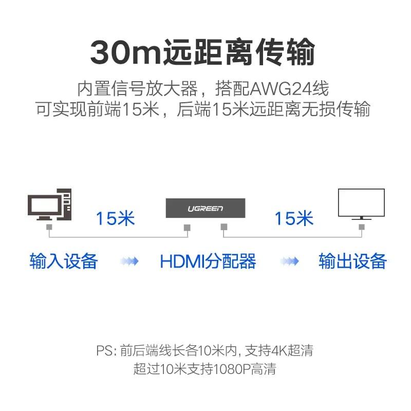 Bộ chia HDMI 1 ra 2 hỗ trợ 4Kx2K chính hãng Ugreen UG-40276 cao cấp