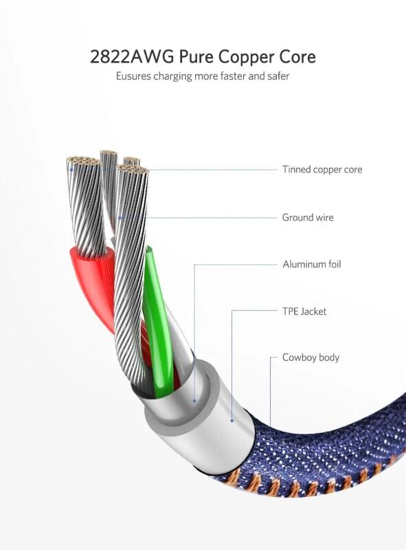 1. Function: Charging & Data Sync 2. USB 2.0 speed up to 480Mbps 3. 5A fast charge 4. Support PD3.0/QC4.0/FCP(100W max) 5. Wire core: tin-plated oxygen free copper 6. Multiple internal shielding 7. Can not