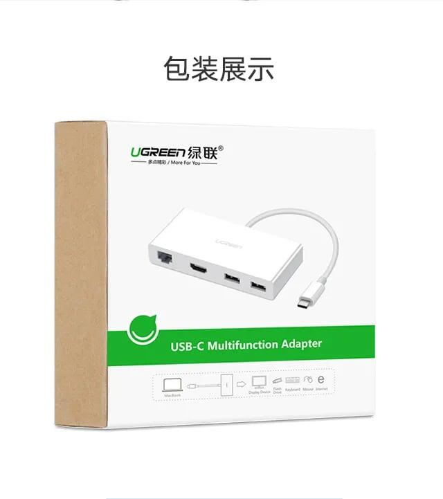 Ugreen 30441 15cm usb c to hdmi multiport adapter trắng us183 1. Feature: converting USB-C to HDMI + USB 3.0 + 2 * USB 2.0 + USB-C supporting Power Delivery (PD) charging 2. Cable length: