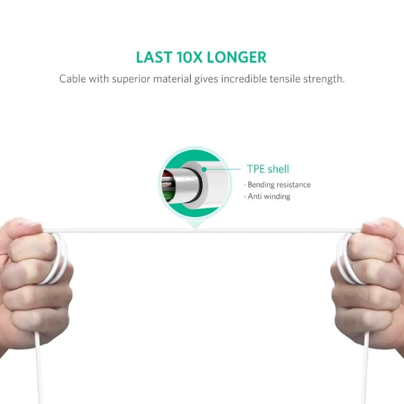 1. Cáp Mạng UGREEN Cat 7 hỗ trợ truyền dữ liệu lên đến 10Gbps và băng thông 600MHz, nhanh hơn nhiều so với CAT6 và ít bị nhiễu hơn. Đây là tùy chọn tốt nhất