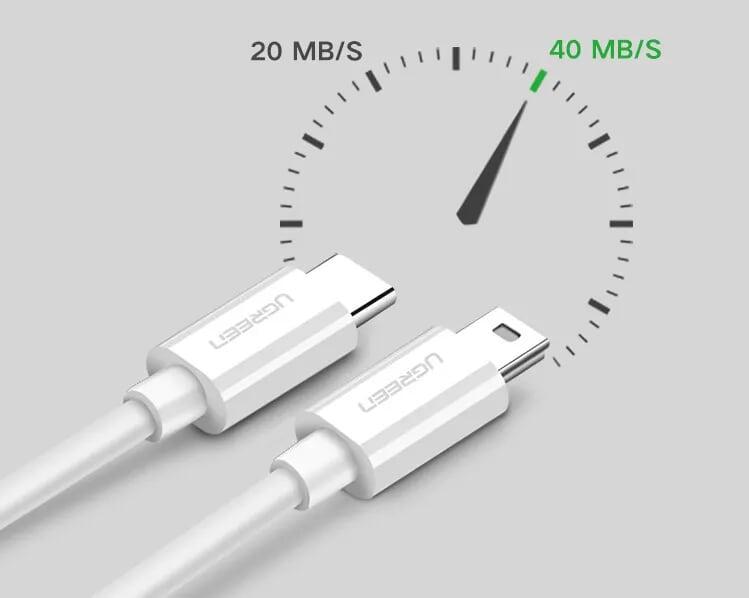 ✨Ugreen UG40418US142TK 1.5M màu trắng Dây USB Type-C sang mini USB - HÀNG CHÍNH HÃNG