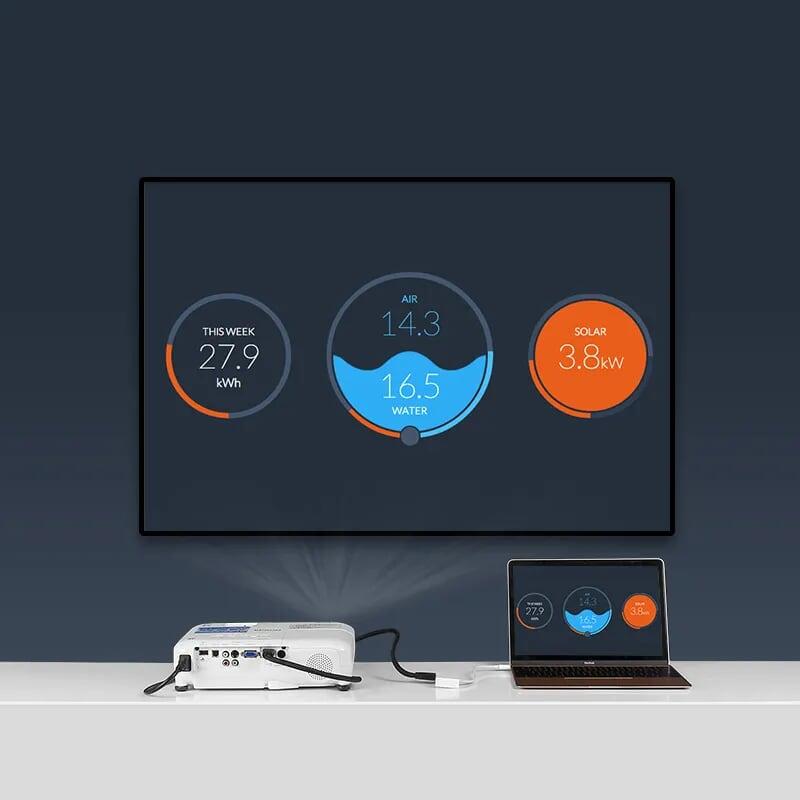 - Features: Connect a computer, laptop, macbook USB-C port to the monitor, projector port VGA and HDMI.