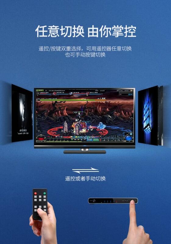 - Bộ chia HDMI Switch Vention 1 ra 2 cho phép chia một tín hiệu ra hai cổng HDMI, hỗ trợ đệm và khuếch đại tín hiệu đầu ra cho hình ảnh và âm thanh