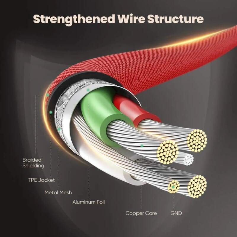 1. Charging Speed: 5V/3A 2. Data Transfer Speed: 480Mbps 3. Cable Material: Nylon 4. Material: Aluminum Alloy+Nylon Braided 5. 100 g 25 x 12 x 4 cm