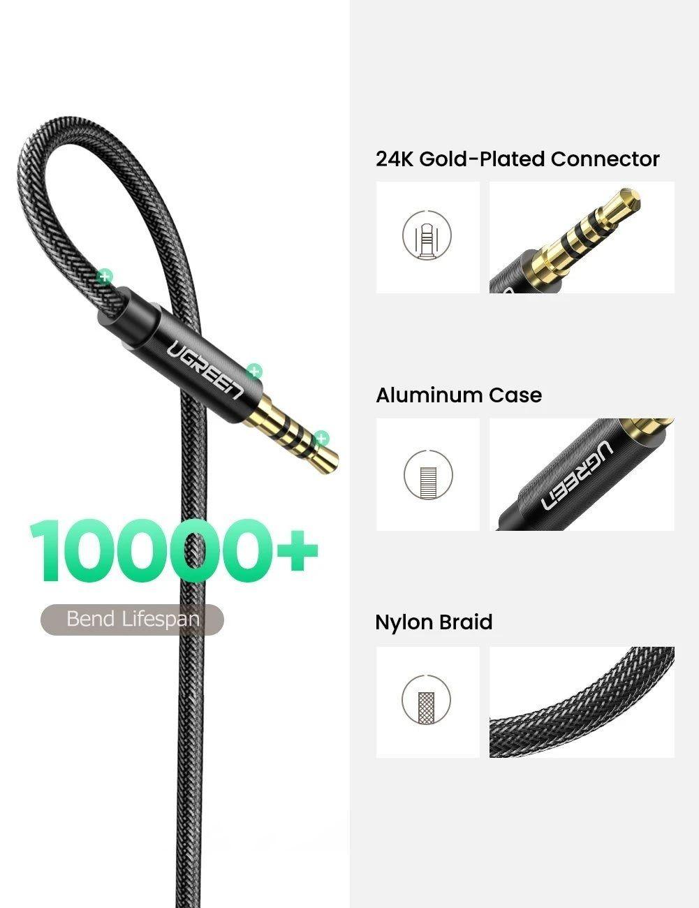 ✨Ugreen UG60845AV118TK 0.5M màu đen 3.5mm 3 ngấn nối dài Cáp âm thanh dây bện nylon 50cm hỗ trợ micro - HÀNG CHÍNH HÃNG