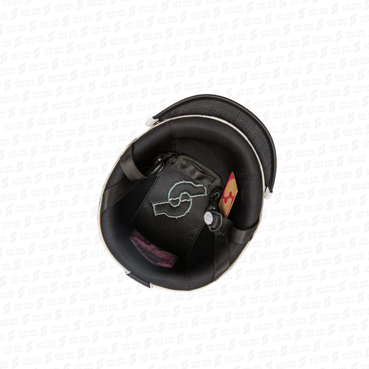• Phần logo NÓN SƠN được gắn trên vỏ nón bảo hiểm Nón Sơn được làm từ da thật.