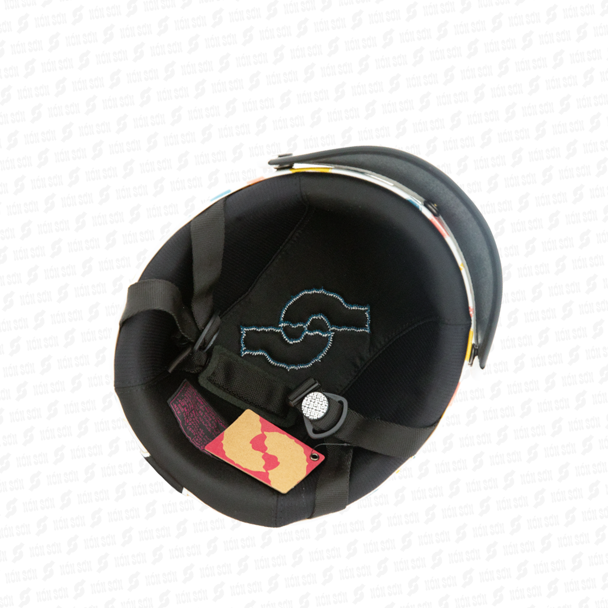 • Phần logo NÓN SƠN được gắn trên vỏ nón bảo hiểm Nón Sơn được làm từ da thật.