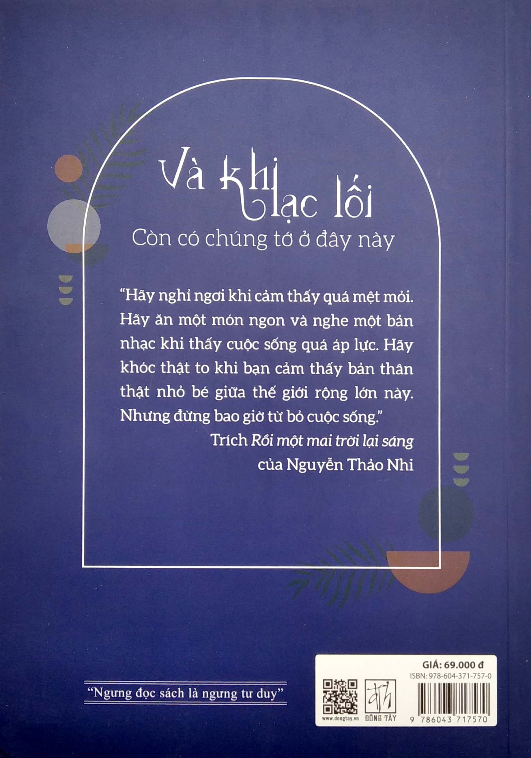 "Hãy nghỉ ngơi khi cảm thấy quá mệt mỏi. Hãy ăn một món ngon và nghe một bản nhạc khi thấy cuộc sống quá áp lực. Hãy khóc thật to khi bạn cảm thấy bản thân thật nhỏ bé giữa thế giới rộng lớn này. Nhưng đừng bao giờ từ bỏ cuộc sống'' II. THÔNG TIN CHI TIẾT Mã hàng 9786043717570 Tên Nhà Cung Cấp Cty Văn Hóa Đông Tây Tác giả Nhiều Tác Giả NXB Thanh Niên Năm XB 2022 Trọng lượng (gr) 230 Kích Thước Bao Bì 20.5 x 14.5 x 0.9 cm Số trang 199 Hình thức Bìa Mềm