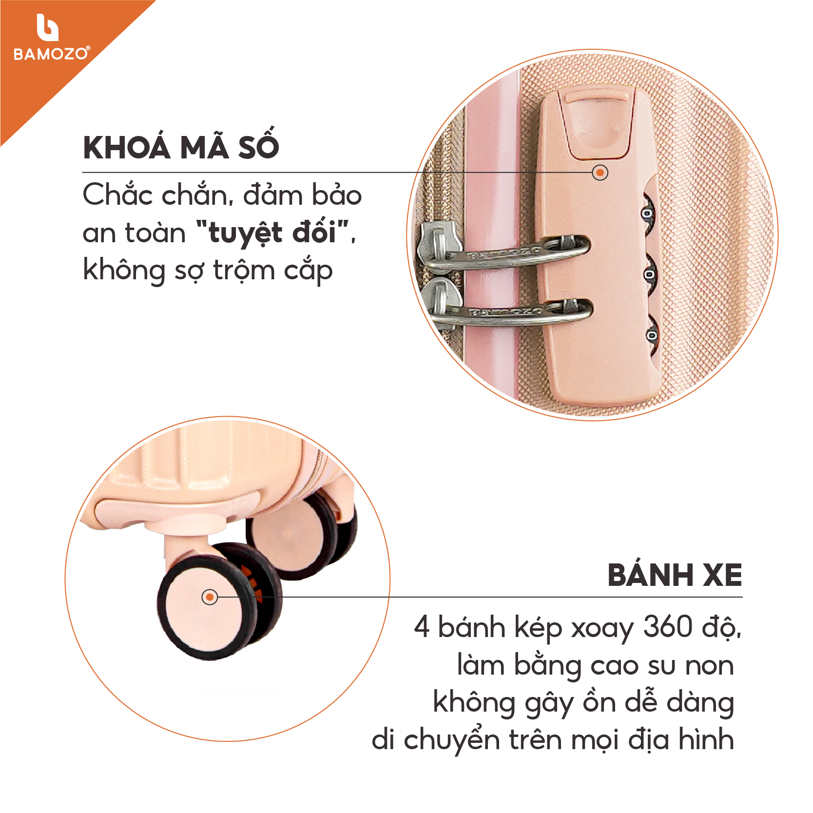 Vali Du Lịch Bamozo Nancy size 20/24 Chất Liệu Nhựa PP Chống Vỡ Tuyệt Đối, Vali Kéo Xách Bền Đẹp - Bảo Hành 5 Năm *Đ̣̆ Đ̂̉ ̂̉ ̣̂ ̉ ́ - Khóa 3 mã