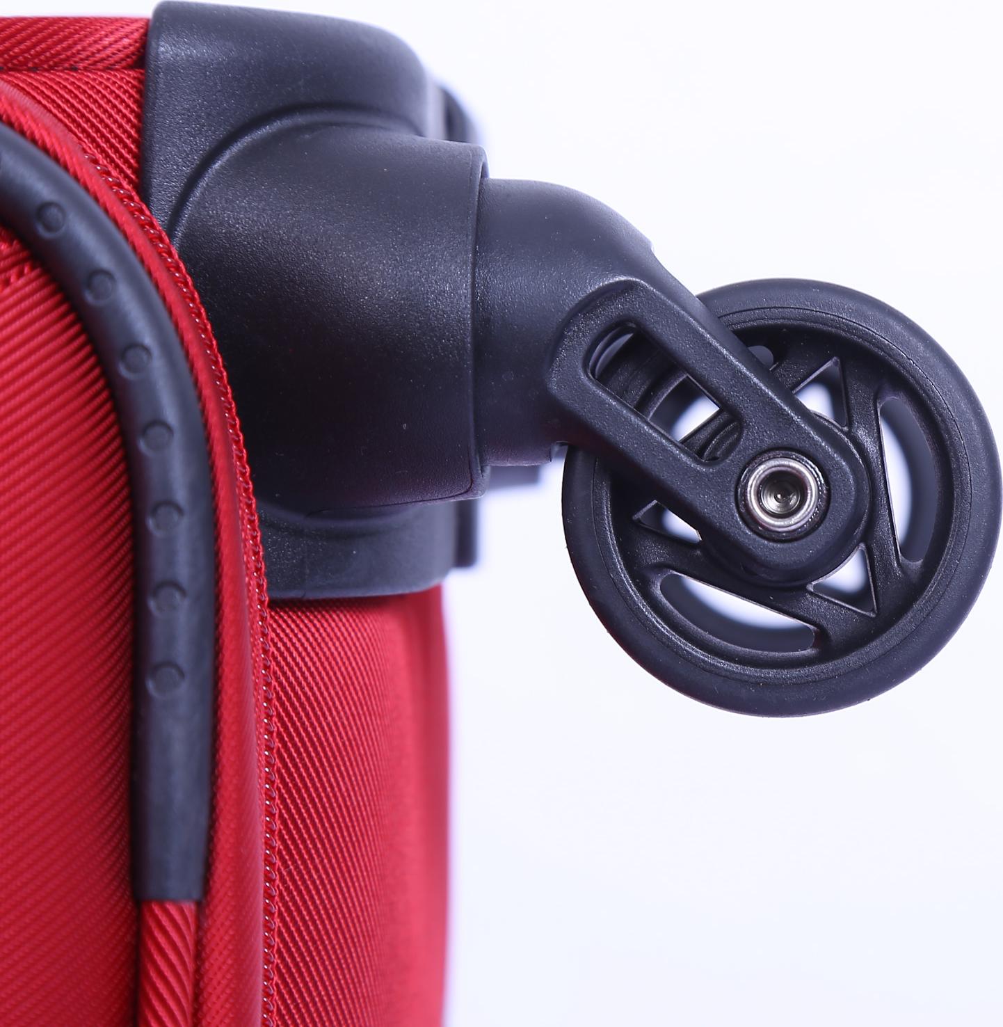 Vali Kéo Du Lịch  đen Phối  đỏ Có Nắp - 22 Inch được thiết kế từ chất liệu vải Polyester có độ bền cao, chống thấm nước tối ưu giúp bảo vệ hành lý bên