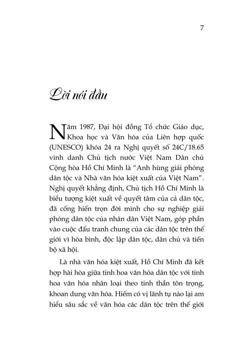 Để đáp ứng nhu cầu nghiên cứu, tìm hiểu của bạn đọc về văn hóa Hồ Chí Minh, Nhà xuất bản Chính trị quốc gia Sự thật xuất bản cuốn sách Văn hóa Hồ Chí Minh của GS. Hà Minh Đức. Cuốn sách là sự tiếp nối các công trình nghiên cứu về Chủ tịch Hồ Chí Minh trên các lĩnh vực: sự nghiệp tư tưởng, văn hóa nghệ thuật, sự nghiệp văn thơ và phong cách đối thoại... mà GS. Hà Minh Đức đã tâm huyết, dày công nghiên cứu không ngừng nghỉ suốt cuộc đời.