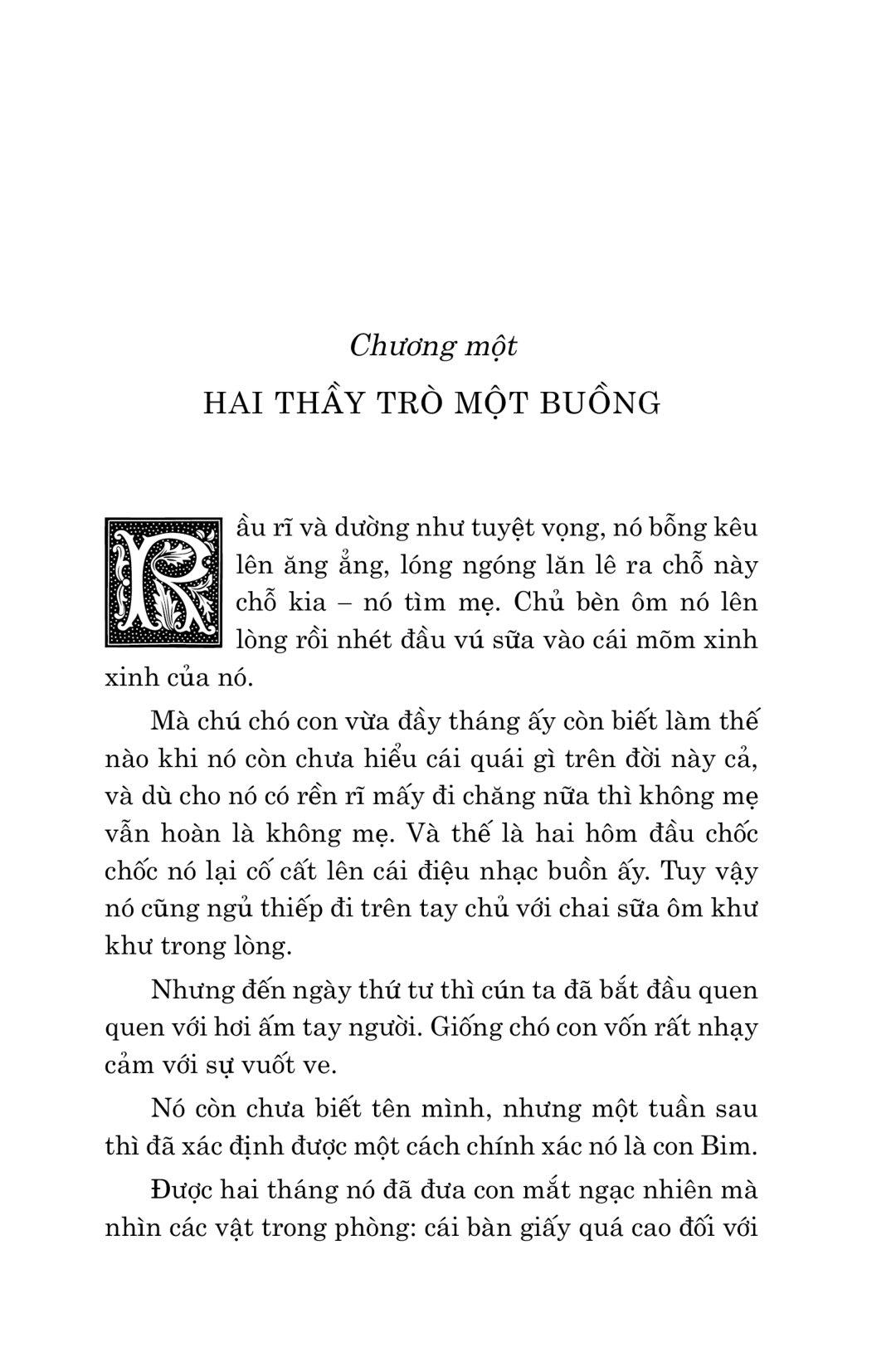 Khi phải lên thành phố chữa bệnh, người thợ săn Ivan Ivanych đã gửi Bim, chú chó thân yêu của m.ình, cho hàng xóm trông coi. Nhớ chủ đến nối bỏ cả ăn, Bim quyết định ra đi tìm người mà suốt bốn năm chung sống nó chưa bao giờ phải rời xa ấy. Lang thang hết nơi này đến nơi khác giữa mùa đông lạnh giá, Bim trải qua không biết bao nhiêu nỗi vất vả và gian nguy. Bị bắt, bị nhốt và hành hạ đến nỗi chân thì giập nát còn cơ thể ngày càng tàn tạ, suy kiệt song Bim vẫn không thay đổi quyết tâm. Nhưng đến khi người chủ thân yêu gặp được Bim, thì nó đã ra đi mãi mãi. Băng tuyết rơi trên cánh mũi Bim không thể tan ra bởi hơi ấm cơ thể đã không còn.