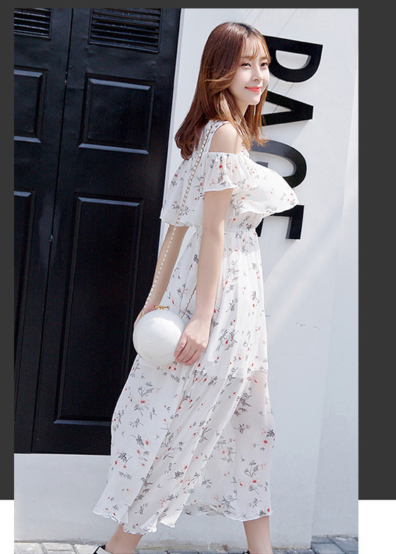 ✨ Váy Hoa Nhí Dáng Dài Phối Cổ Bèo – Outfit Đi Biển Siêu Xinh, Nữ Tính & Thời Thượng 🌴👗