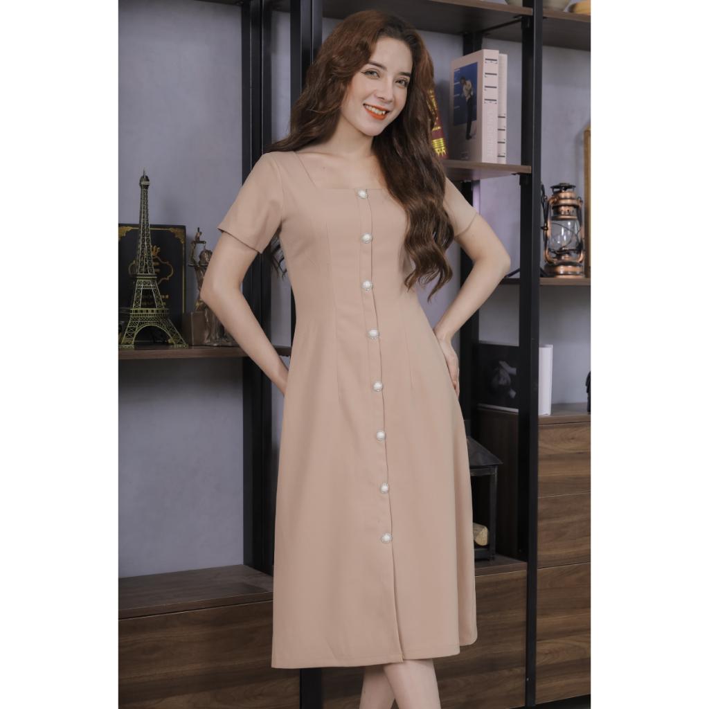 ✨Váy Màu Hồng Be Cúc Trước Thanh Lịch 23V007 Cao Cấp Pi Style