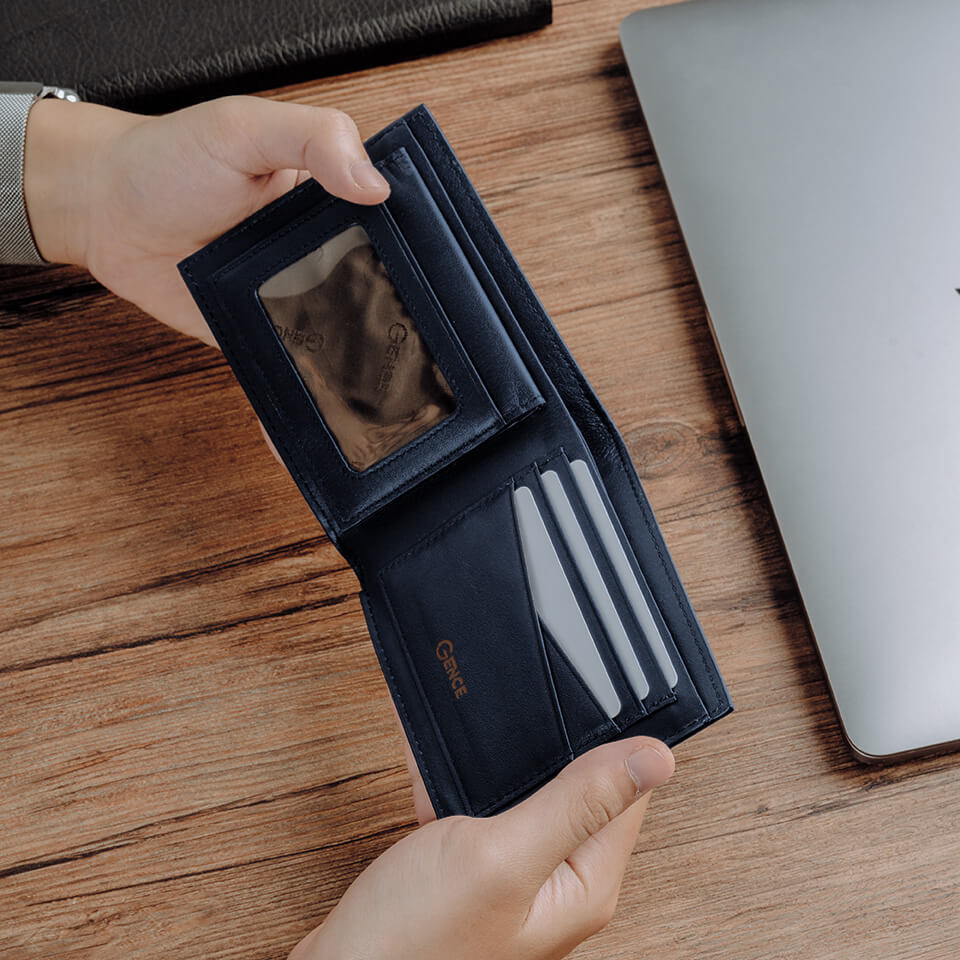 ✨Ví Da Nam Bóp Da Nam Hàng Hiệu GENCE C12 Da Bò Cao Cấp Màu Xanh Navy Dáng Ngang