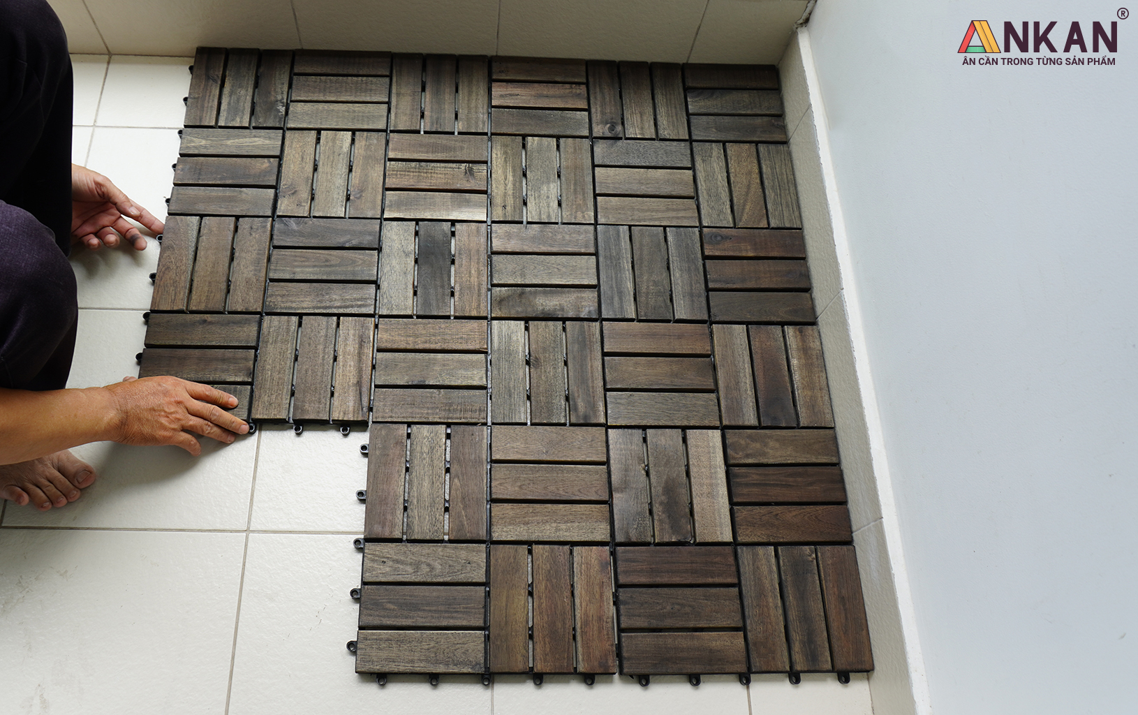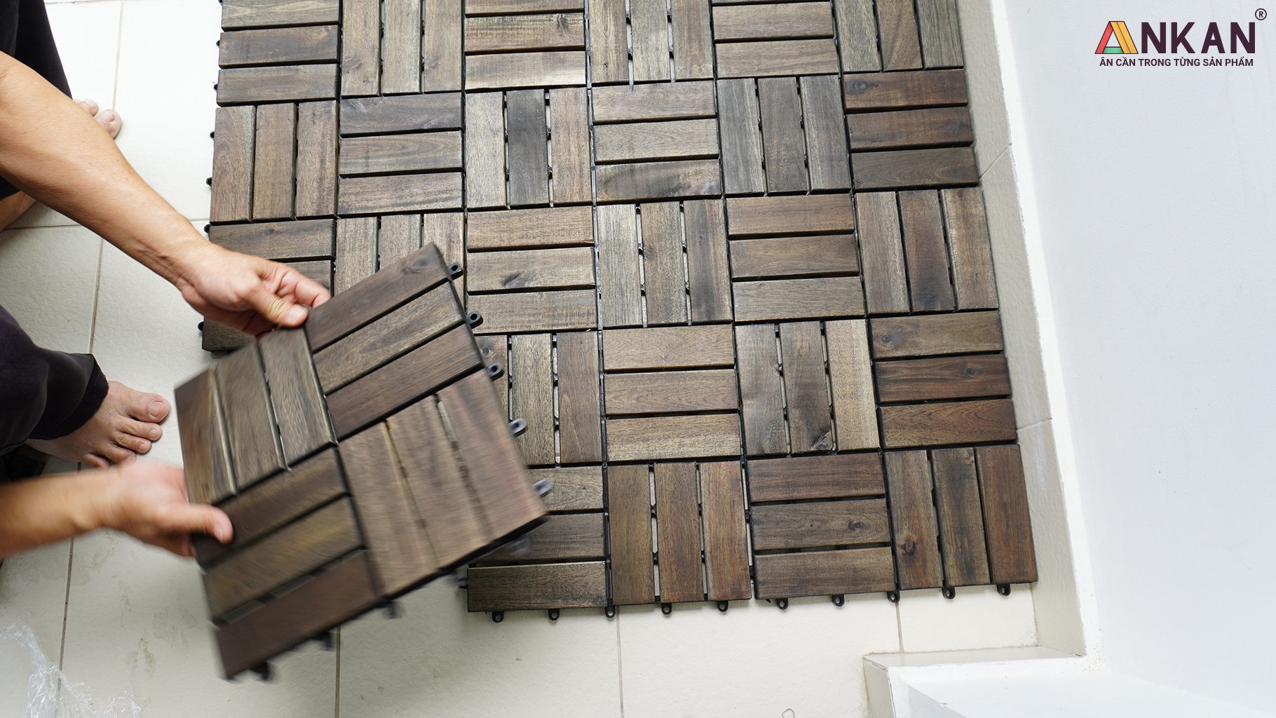 - Đặc điểm nổi bật của vỉ gỗ là có thể thoát nước tốt nhờ hệ thống đế nhựa bên dưới. Do đó có thể lắp trên nơi thoát nước trên ban công Sau khi