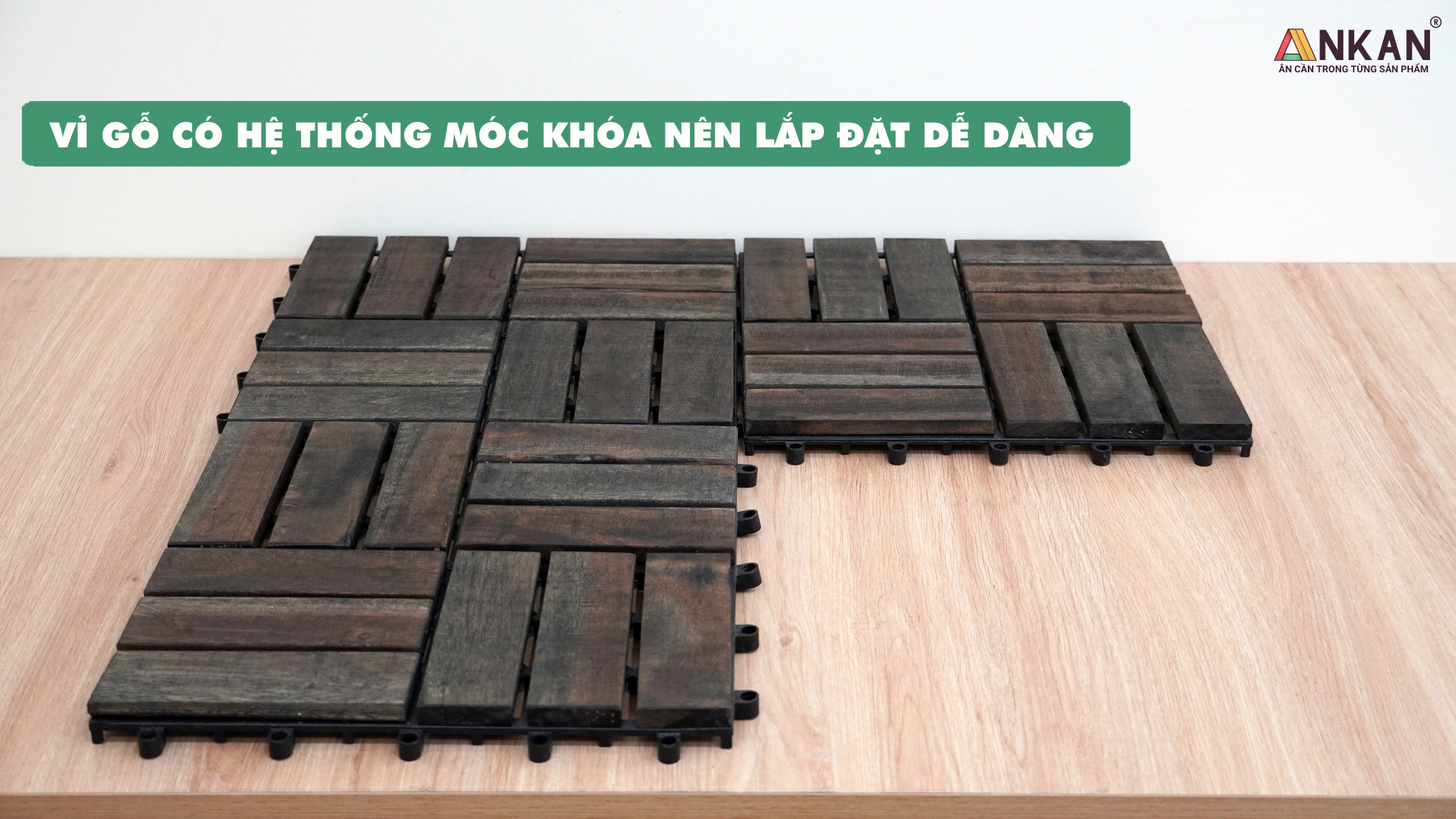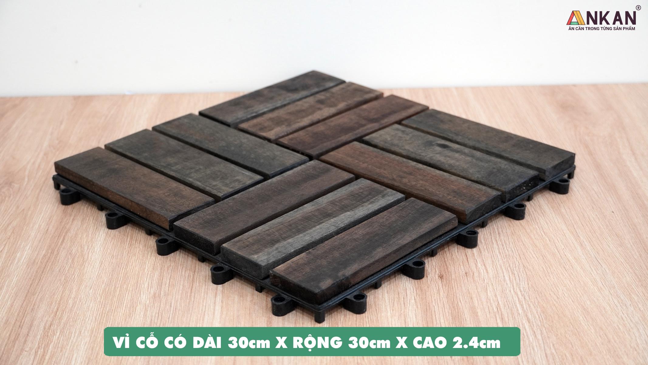 Mua tại TiktokVỉ Gỗ Lót Sàn Ban Công Thương Hiệu ANKAN Gu Màu Đen 12 Nan là một trong những sản phẩm lót sàn ban công phổ biến hiện nay. Khu vực thường sử dụng sản phẩm này là khu Thảo Điền. Ở đây, người nước ngoài hay chọn màu đen để trang trí ban công của mình. Chúng ta sẽ cùng nhau tìm hiểu về vỉ gỗ 12 nan độc đáo này nhé. ƯU ĐIỂM VỈ GỖ LÓT SÀN NAN 12 MÀU ĐEN