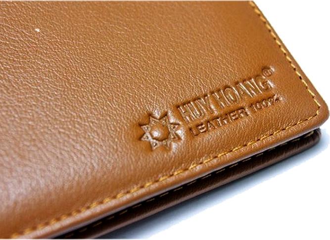 Ví/Bóp nam Huy Hoàng da bò viền chỉ màu nâu 2130