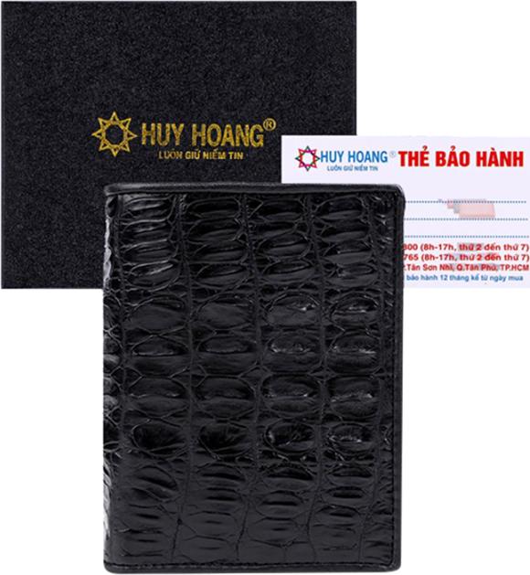 ✨Ví Nam Da Cá Sấu Gai Đuôi Kiểu Đứng Huy Hoàng HT2258 (12.5 x 10 cm) - Đen