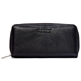 Ví da bò cầm tay màu đen bóng có dây kéo sang trọng