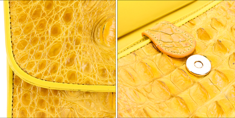 ✨Ví Nữ Da Cá Sấu 3 Gấp Nguyên Con Huy Hoàng HT3299 (19 x 10.5 cm) - Vàng Nghệ