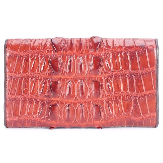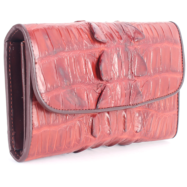 Ví da cá sấu cầm tay 2 ngăn khoá kéo | Ví cầm tay màu nâu đỏ