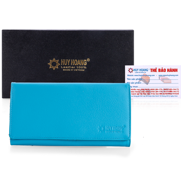 Ví/Bóp nữ da bò Huy Hoàng cao cấp 1 khóa màu xanh dương 3147