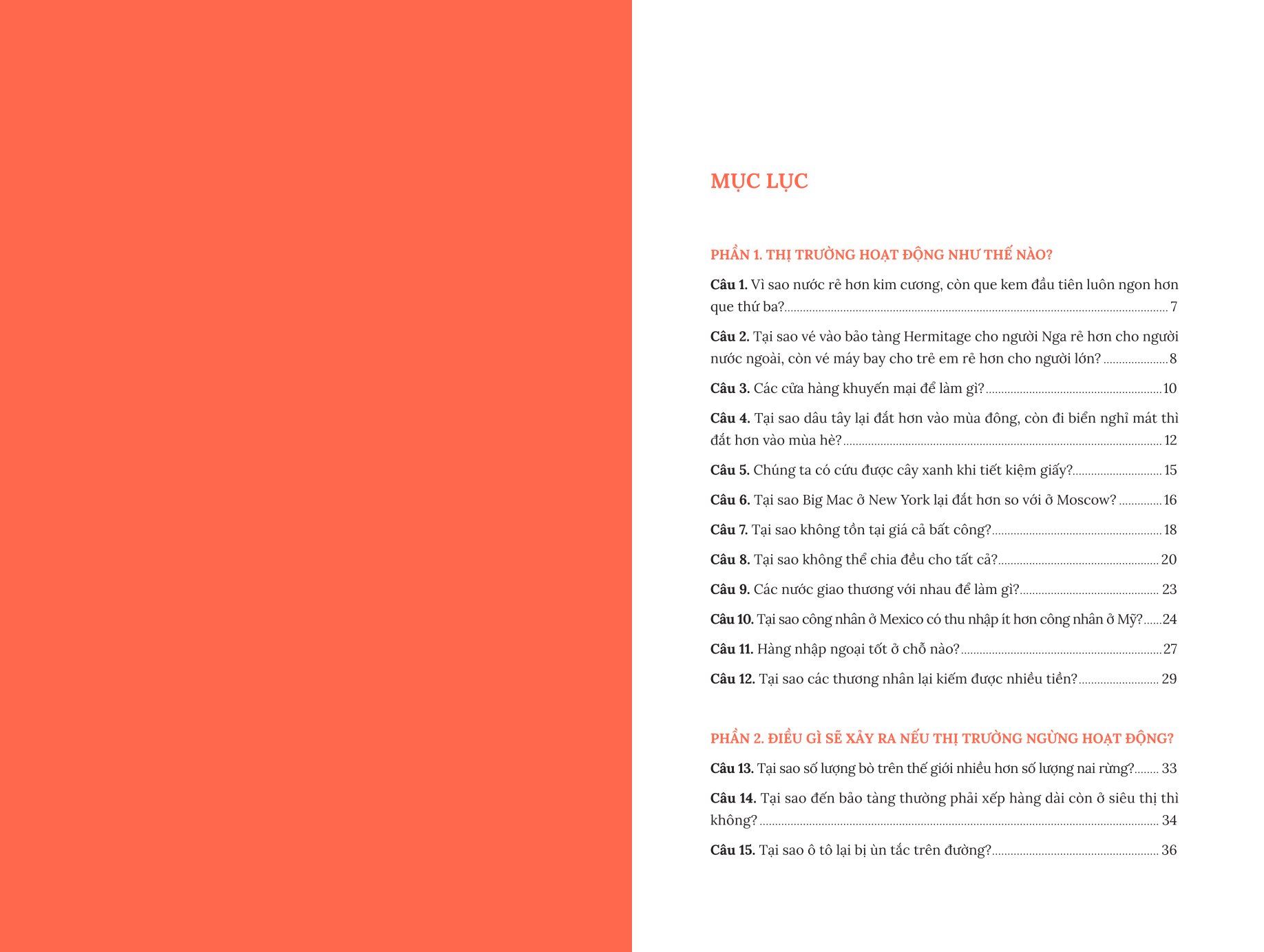 Theo hình thức hỏi đáp, cuốn sách này sẽ giúp bạn dễ dàng hiểu được nền kinh tế đang vận hành ra sao, dù bạn là thanh thiếu niên hay người trưởng thành, đang là một người tiêu dùng, nhân viên công ty, một nhà tự doanh theo kiểu truyền thống hay đang ấp ủ ý tưởng khởi nghiệp… Bạn sẽ thấy kinh tế học không hề khô khan hay chỉ là chuyện của các chuyên gia.