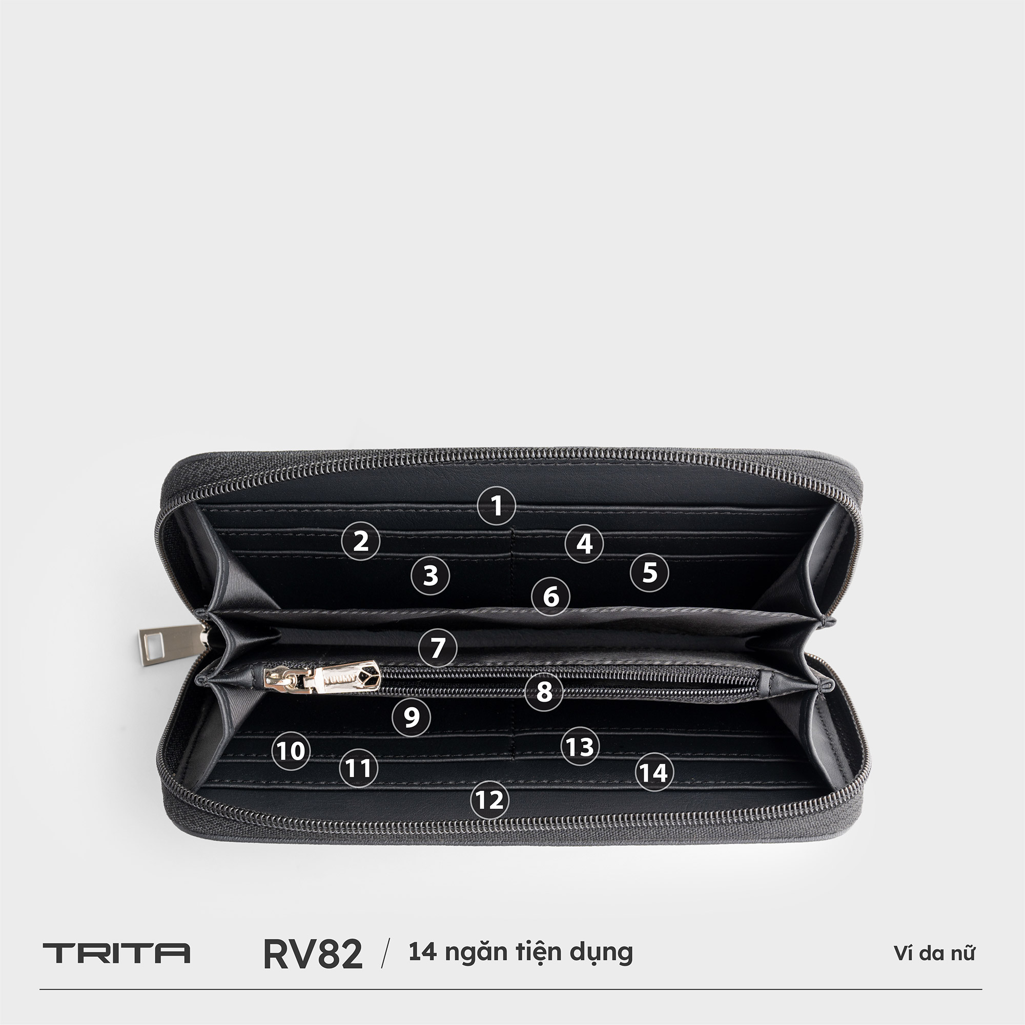 Ví da nữ thời trang cao cấp Trita RV82 với thiết kế khóa kéo chắc chắc nên bạn yên tâm bảo quản các vật dụng quan trọng như: tiền mặt, CCCD, thẻ ATM, giấy tờ tùy thân,...Dây đeo tay có móc khóa kim loại chắc chắn giúp bạn dễ dàng mang theo ví bên mình. Logo được dập chìm là điểm nhấn tinh tế cho chiếc ví của bạn.