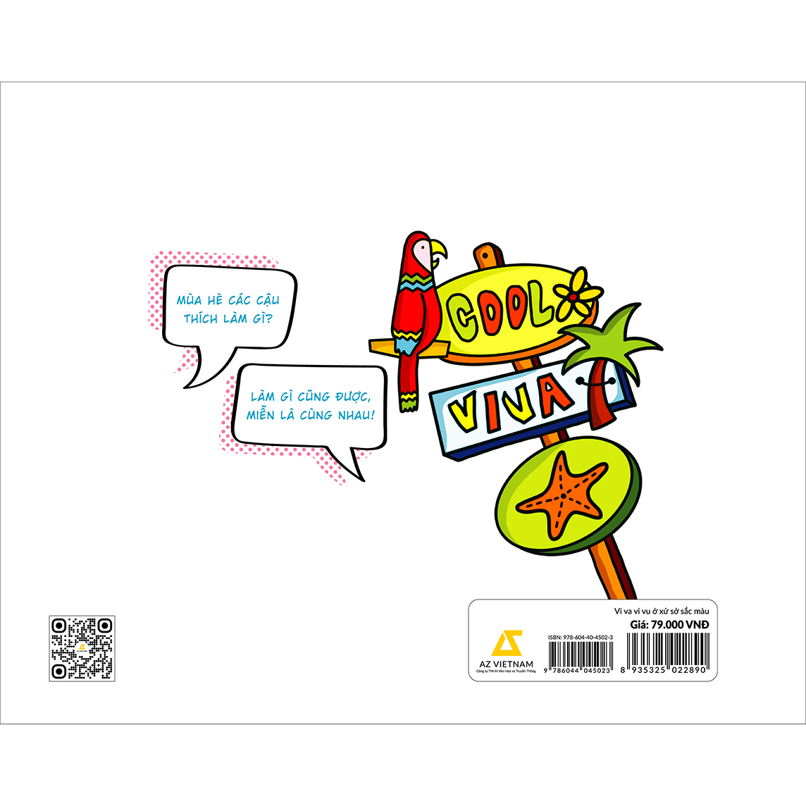 Mua tại TiktokGiới thiệu sách Vi va vi vu ở xứ sở sắc màu là một hành trình khám phá đầy ngộ nghĩnh với 30 bức tranh minh họa thế giới động vật kỳ diệu, nơi những chú hà mã mở những sạp kem, những chú bò bán phở, hay những chú cá heo tung tăng nhảy múa giữa đại dương…