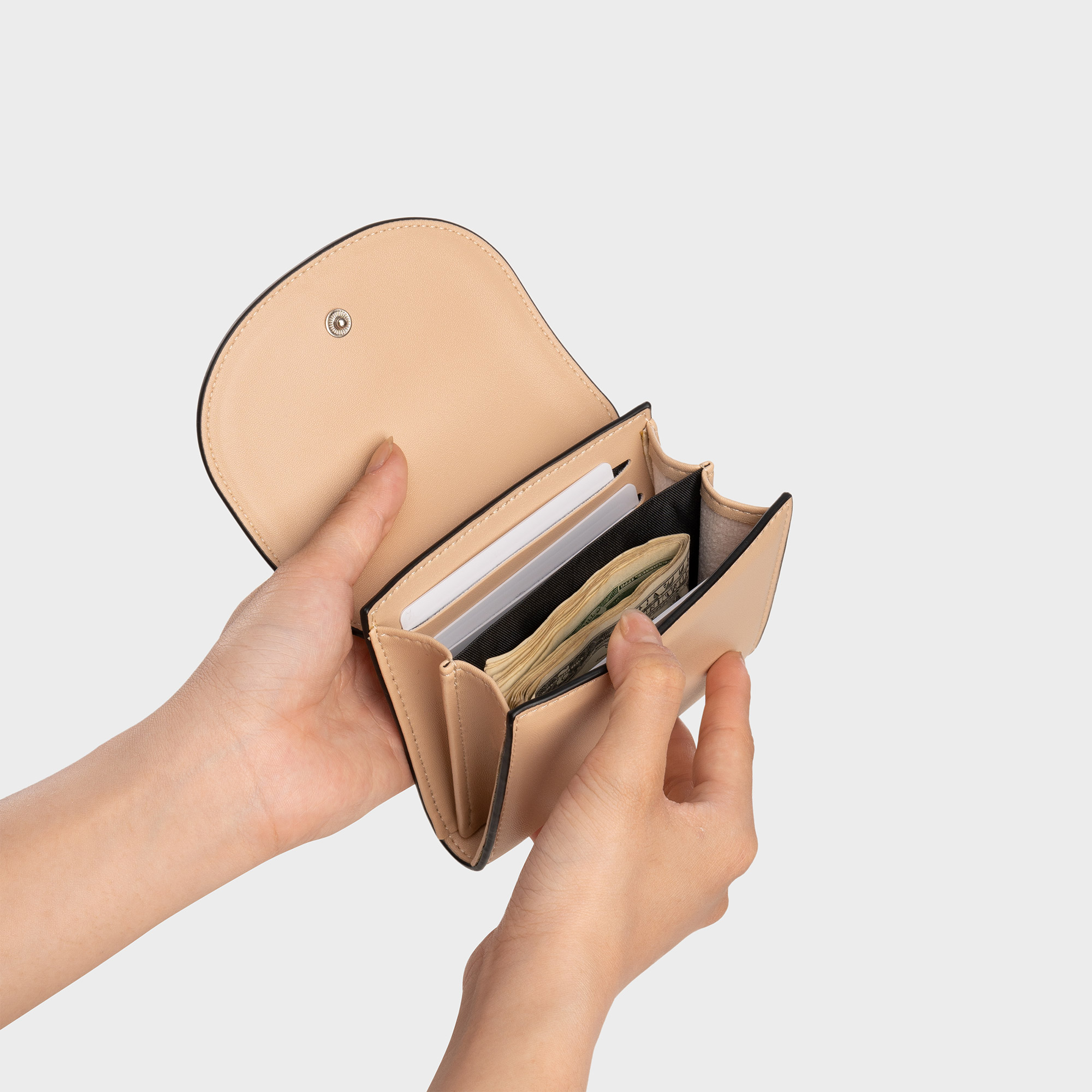 Ví da nữ nắp gập viền thoi Trita RV88 dùng để lưu giữ các vật dụng cá nhân quan trọng như tiền bạc, giấy tờ, thẻ xe,... một cách gọn gàng mà không vướng víu