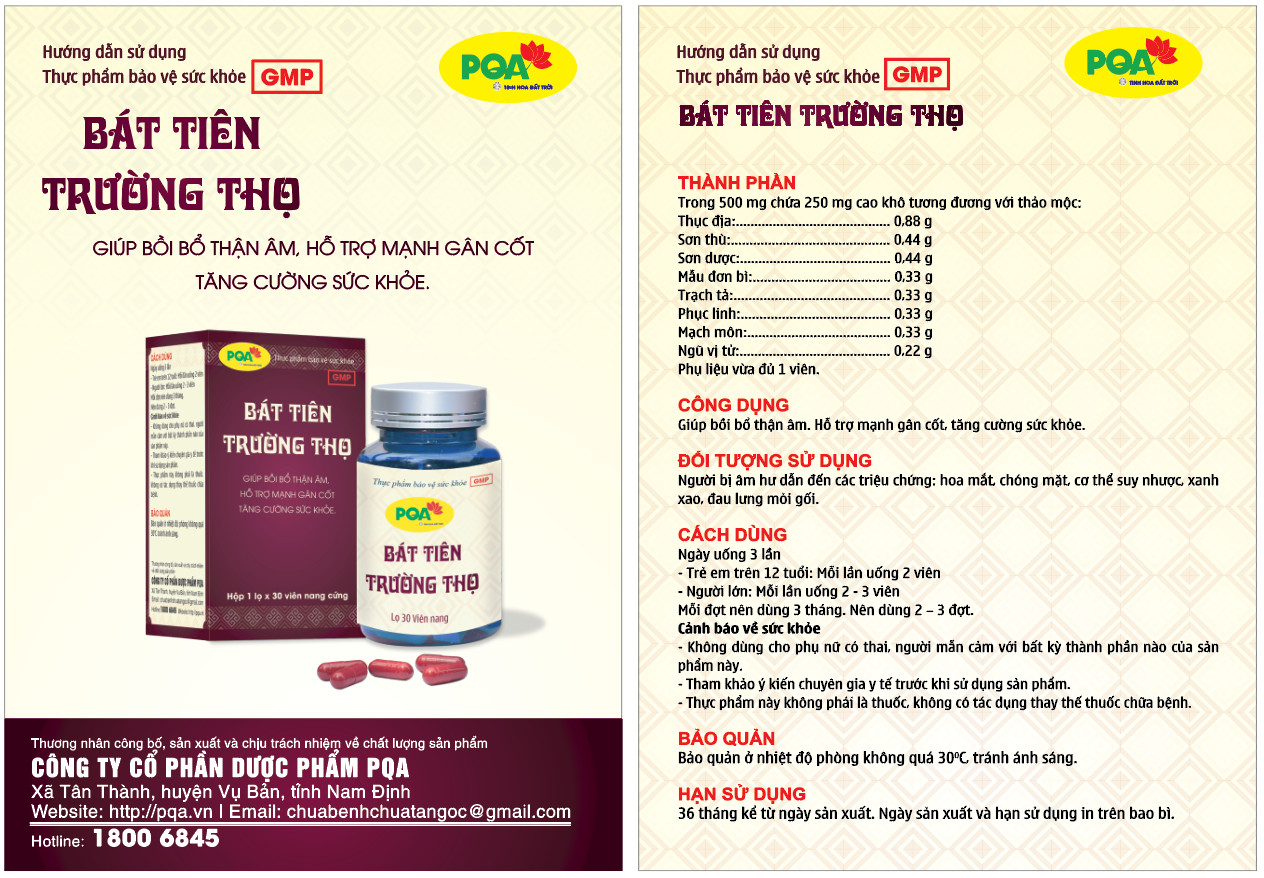 PQA BÁT TIÊN TRƯỜNG THỌ (viên nang) - Hỗ trợ bồi bổ thận âm