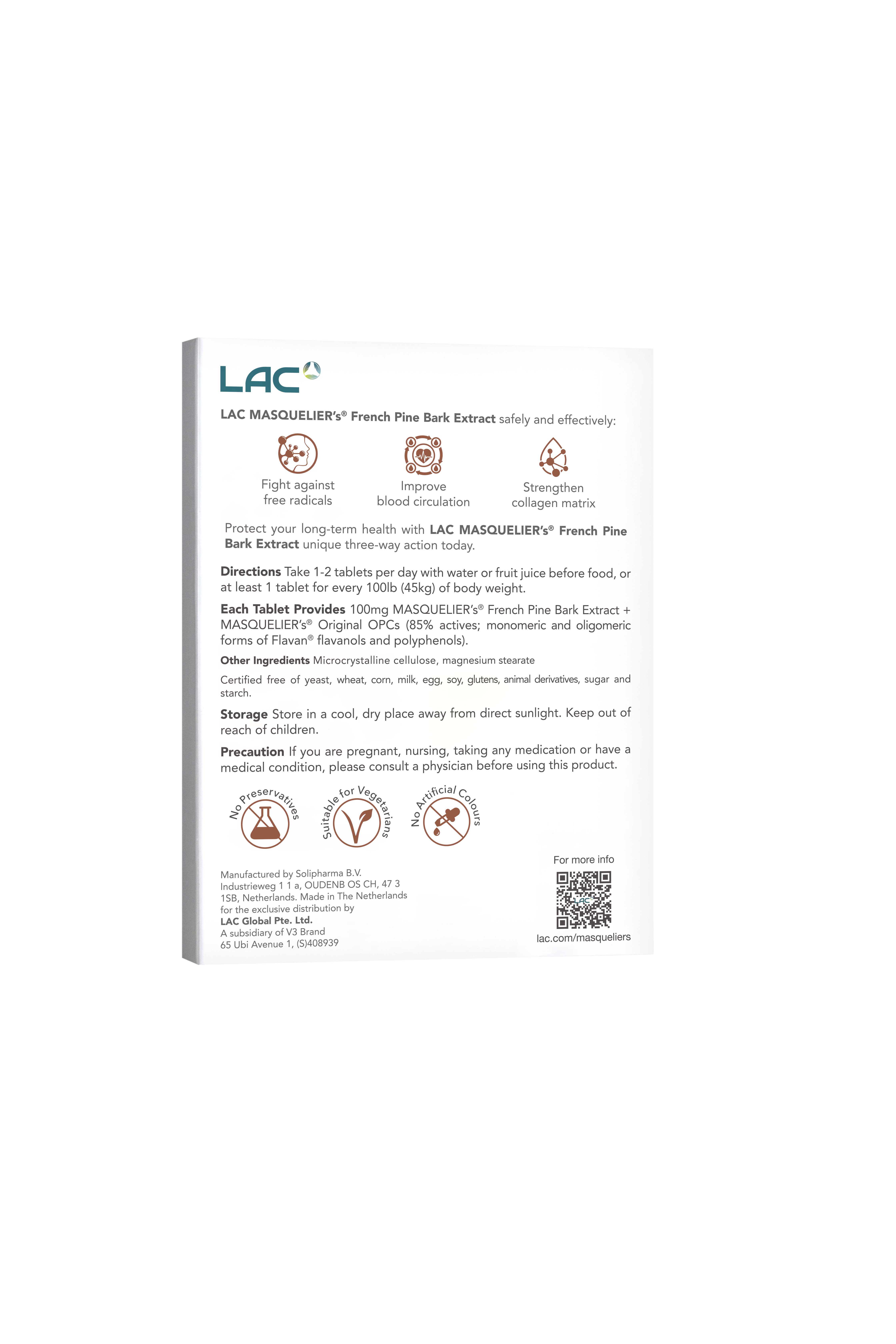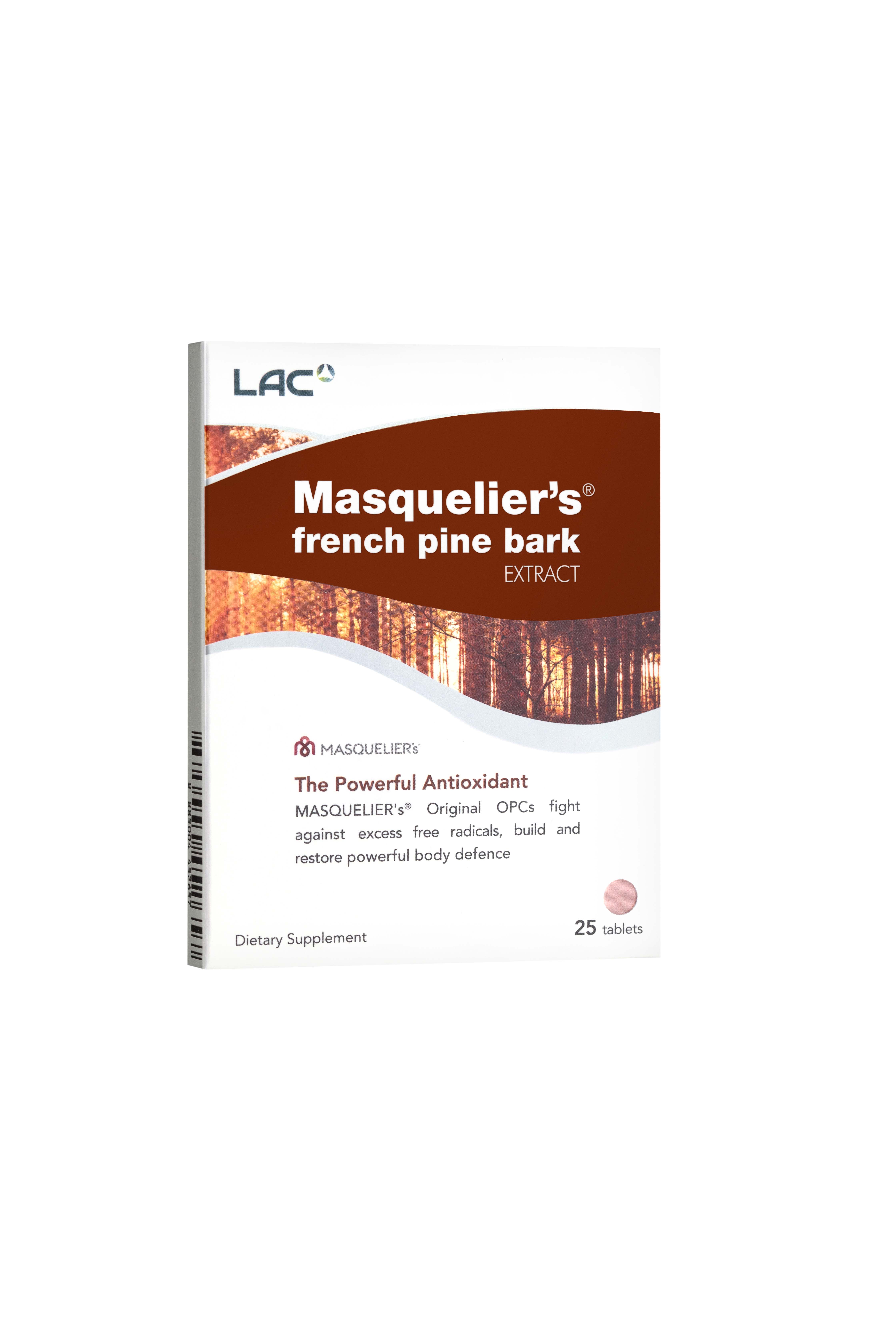 VIÊN UỐNG CHỐNG OXY HÓA LAC MASQUELIER CHIẾT XUẤT VỎ THÔNG PHÁP (25 VIÊN) với hợp chất Oligomeric Proanthocyanidin Compounds (OPCs) độc đáo được phát hiện bởi nhà khoa học đột phá - Giáo sư Jack Masquelier và là sản phẩm đầu tiên được nghiên cứu, chứng minh rộng rãi trên thế giới. Hợp chất OPCs độc đáo có trong mỗi viên nang uống giúp cơ thể đạt được liều lượng chất chống oxy hóa thích hợp thông qua cơ chế bảo vệ ba tác động an toàn nhằm: