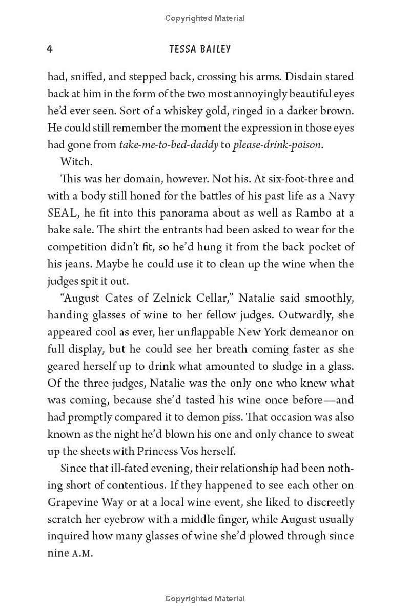 August Cates may own a vineyard, but he doesn’t know jack about making wine. He’s determined to do his late best friend proud, no matter what it takes. Except his tasting room is empty, his wine is disgusting (seriously, he once saw someone gag), and his buddy’s legacy is circling the drain. No bank will give him the loan he needs to turn the business and then the gorgeous, feisty heiress knocks on his door.