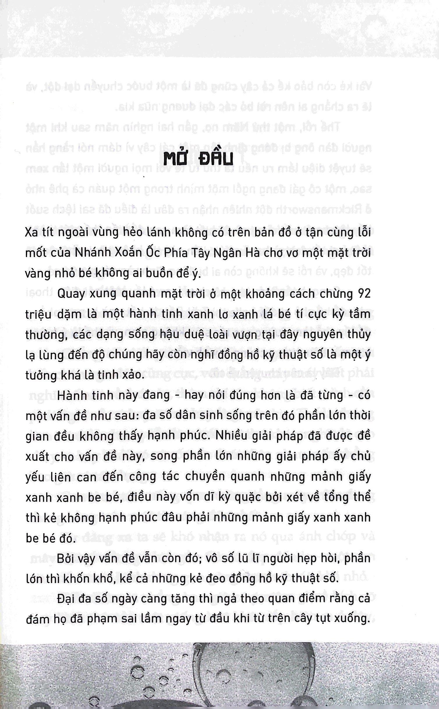 Tám năm lưu lạc trong Vũ Trụ, và đây, Arthur Dent lại được đĩa bay thả xuống một hành tinh nhỏ sau một chuyến quá giang dài dằng dặc băng qua dải Ngân Hà. Giữa đêm đen mịt mùng. Trong dông tố bão bùng. Anh đứng chờ.