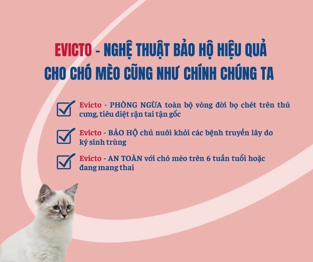 Các bạn chó mèo hiện tại có thể được sống hoàn toàn trong nhà và được chăm sóc kĩ hơn; nhưng các rủi ro về bọ chét, rận tai, muỗi, giun đũa, giun móc ... vẫn luôn hiện hữu.Evicto - Sản phẩm mới từ Vi...