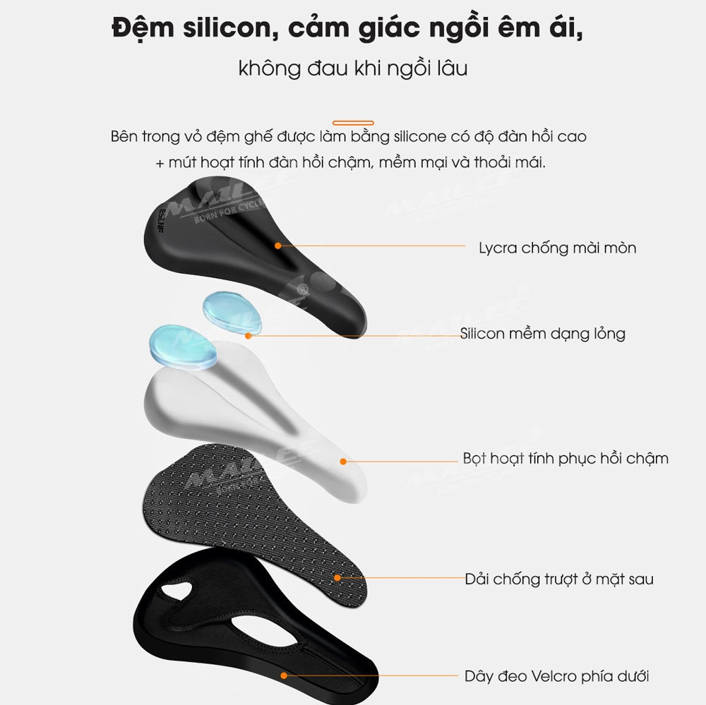 Mua tại TiktokVỏ Bọc lót yên xe đạp thể thao thoáng khí ESL-01 với bọt biển mềm dày, 1 cỡ size 28x18 cm cho xe đạp địa hình/ xe đạp đua đường trường Phụ kiện xe đạp Vỏ bọc yên xe đạp chống sốc chống thấm nước với đệm ngồi xe đạp chống sốc Loại 1 cỡ, dành cho yên xe có kích thước dưới 28x18 cm Vỏ bọc đệm ghế mang lại sự thoải mái và hỗ trợ tối đa cho người ngồi Chất liệu silicone có độ đàn hồi cao và bọt hoạt tính phục hồi chậm Các rãnh được sắp xếp hợp lý và thiết kế thoáng khí cho luồng không khí tối ưu. Thiết kế bọc toàn bộ tiện lợi với dây đeo chéo để vừa vặn an toàn. Thiết kế chống trượt để tăng thêm sự ổn định và thoải mái. Chất liệu: Da, Silicon, Mút hoạt tính Loại: Vỏ đệm Chi tiết kích thước: Dài: 28cm, Rộng: 18cm, Dày: 3cm