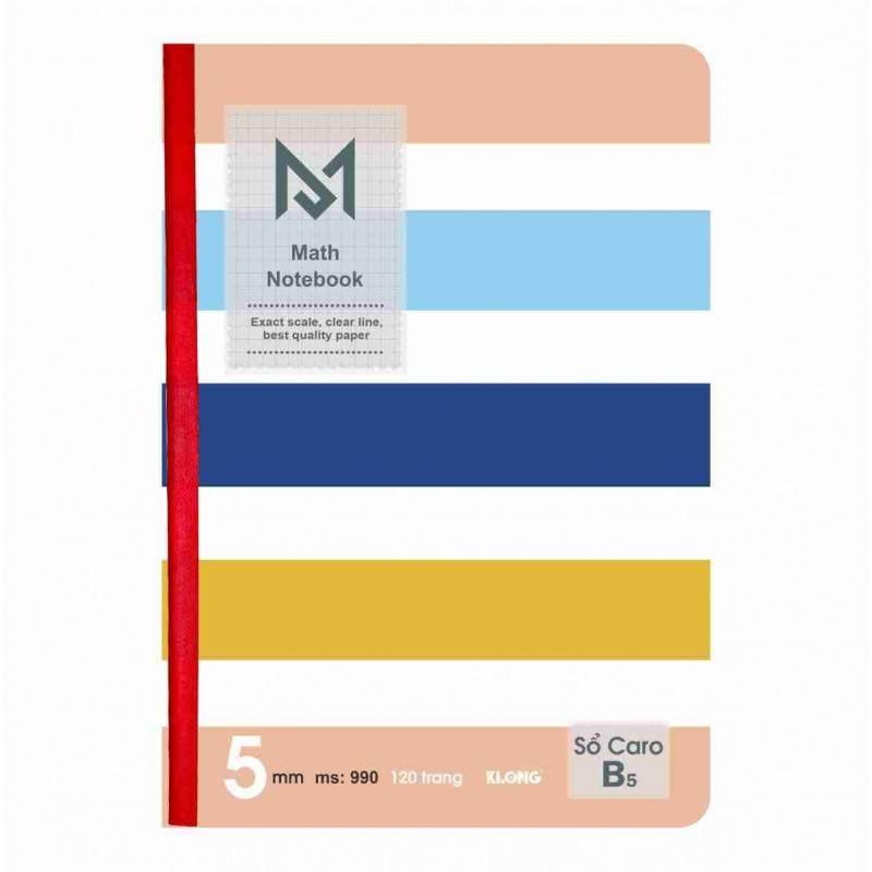 Vở Caro may dán gáy KLONG B5 120 trang 70/76; MS: 990 - Kích cỡ ô caro nét liền: 5x5mm - Định lượng: 70 g/m2 - Độ trắng: 76% ISO - Kích thước: (175 x