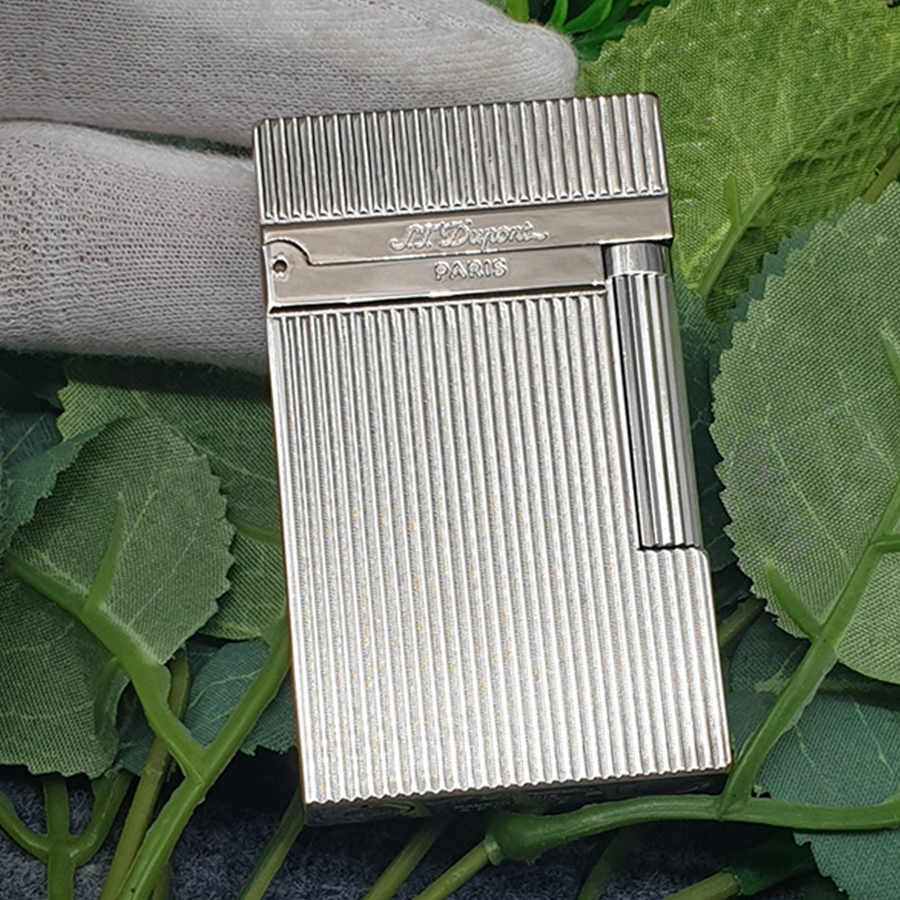 Hộp Quẹt Bật Lửa Dupont Gas Đá D95B Họa Tiết Hoa Văn Kẻ Sọc Cách Điệu Sơn Mài Kim Tuyến Màu Bạc