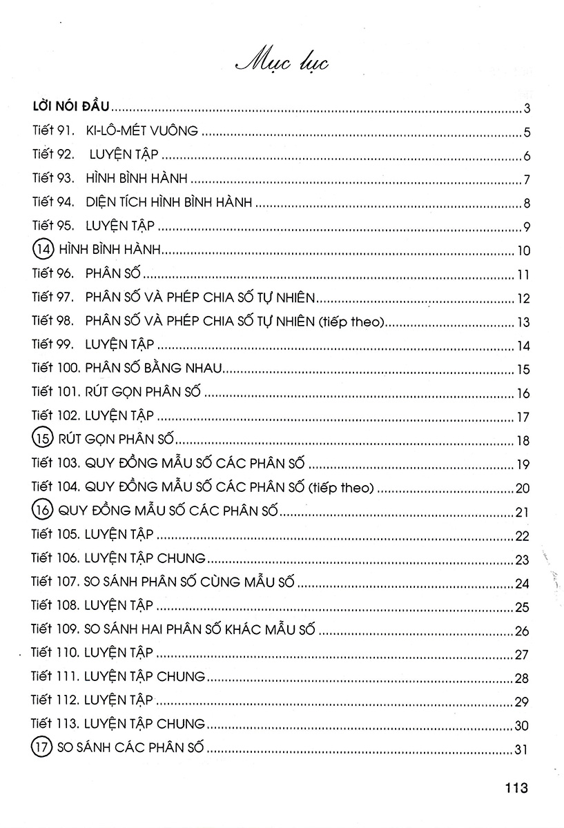 Nội dung cuốn sách được biên soạn theo từng tiết học tương ứng với các tiết học ở nhà trường nhưng với mức độ cơ bản được phát triển phong phú hơn. Các bài tập cơ bản thể hiện được kĩ thuật tỉnh toán, trên cơ sở đó phát triển năng lực học tập môn Toán. Các tiết ghi số có khoanh tròn từ (14) đến (37) dành cho học sinh khá giỏi.