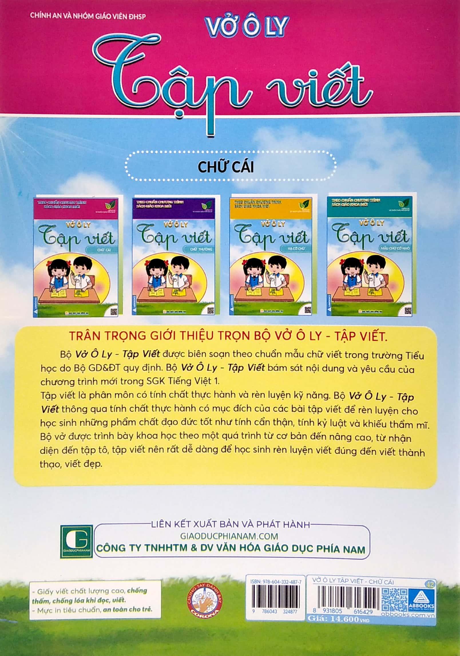 Bộ Vở Ô Ly - Tập Viết được biên soạn theo chuẩn mẫu chữ viết trong trường Tiểu học do Bộ Giáo Dục và Đào Tạo quy định. Bộ Vở Ô Ly - Tập Viết bám sát nội dung và yêu cầu của chương trình mới trong Sách Giáo Khoa Tiếng Việt 1