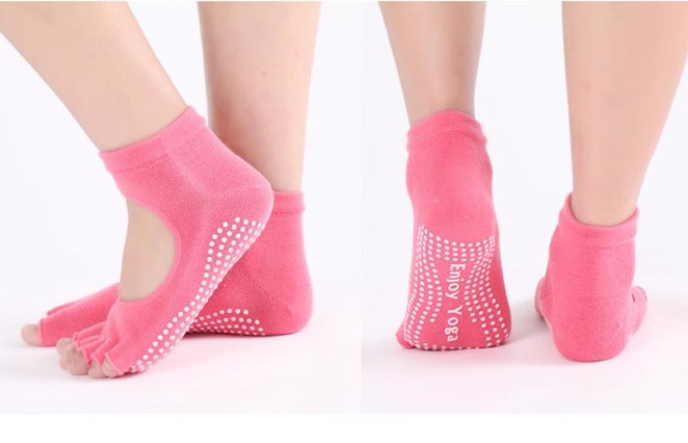 - Vớ tập yoga thiết kế dạng 5 ngón rời, đính các hạt nhựa dẻo dưới lòng bàn chân, vừa có tác dụng chống trượt, vừa giúp massage bàn chân thư giãn khi tập.