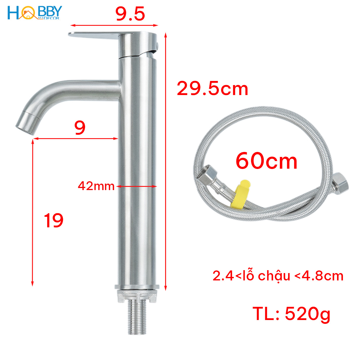 Vòi chậu lavabo lạnh gắn bàn đá inox 304 xước mờ Hobby home decor LBL8 Thông tin kỹ thuật - Chất liệu: Inox 304 xước mờ - Thân cao 29.5cm - Thân vòi đường kính: