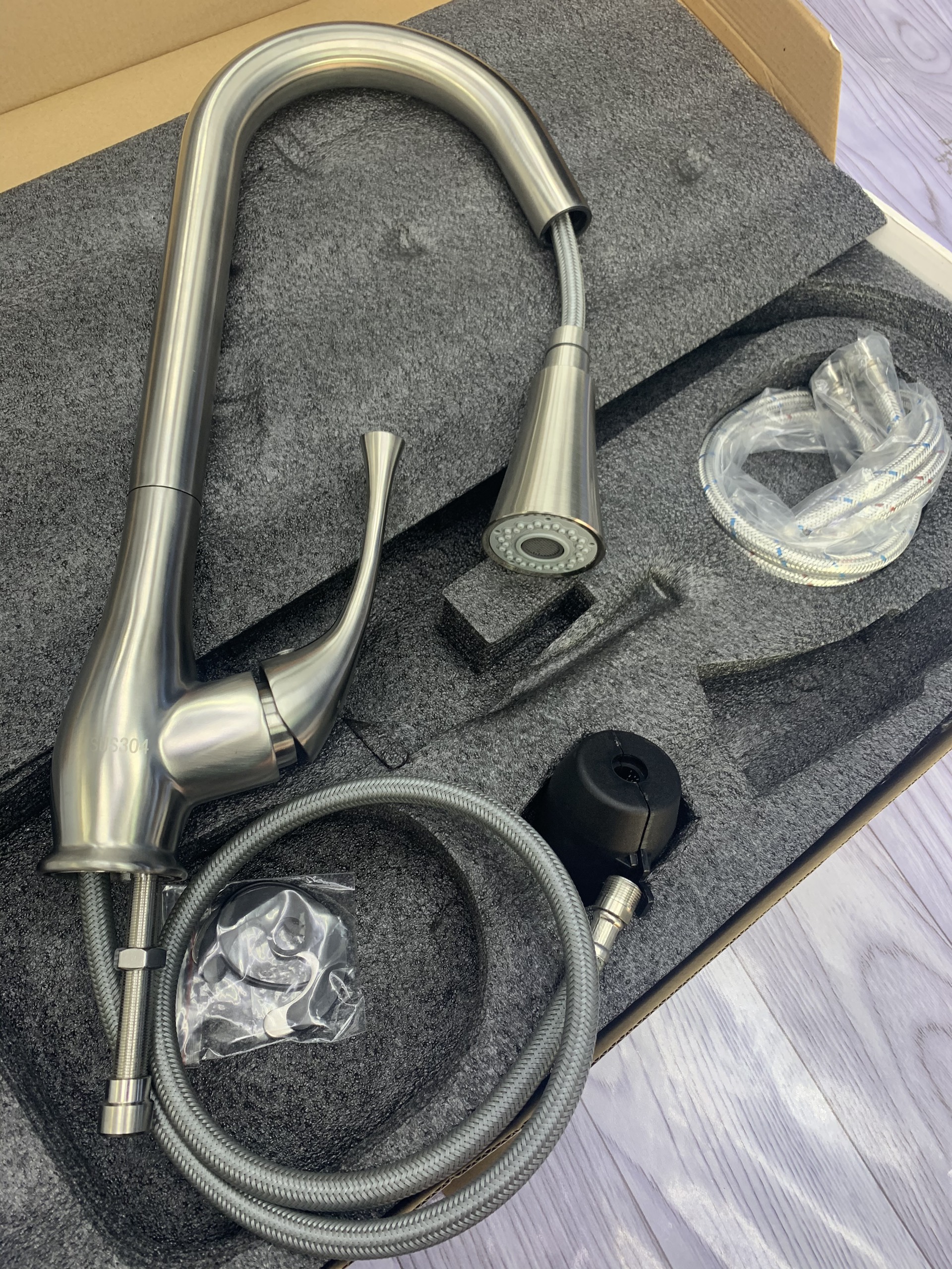 Chất liệu: Inox 304 Thiết kế 2 đường nước nóng lạnh Đầu vòi rửa có thể kéo dài Đầu vòi tạo bọt, giúp tiết kiệm nước và hạn chế bắn nước khi sử dụng Vòi