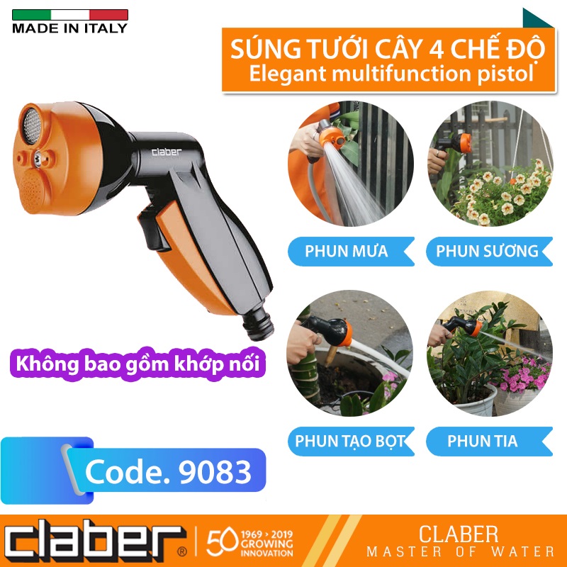 Vòi tưới cầm tay Đa Năng 4 kiểu phun Claber 9083 Hàng Ý | MakaGarden.vn