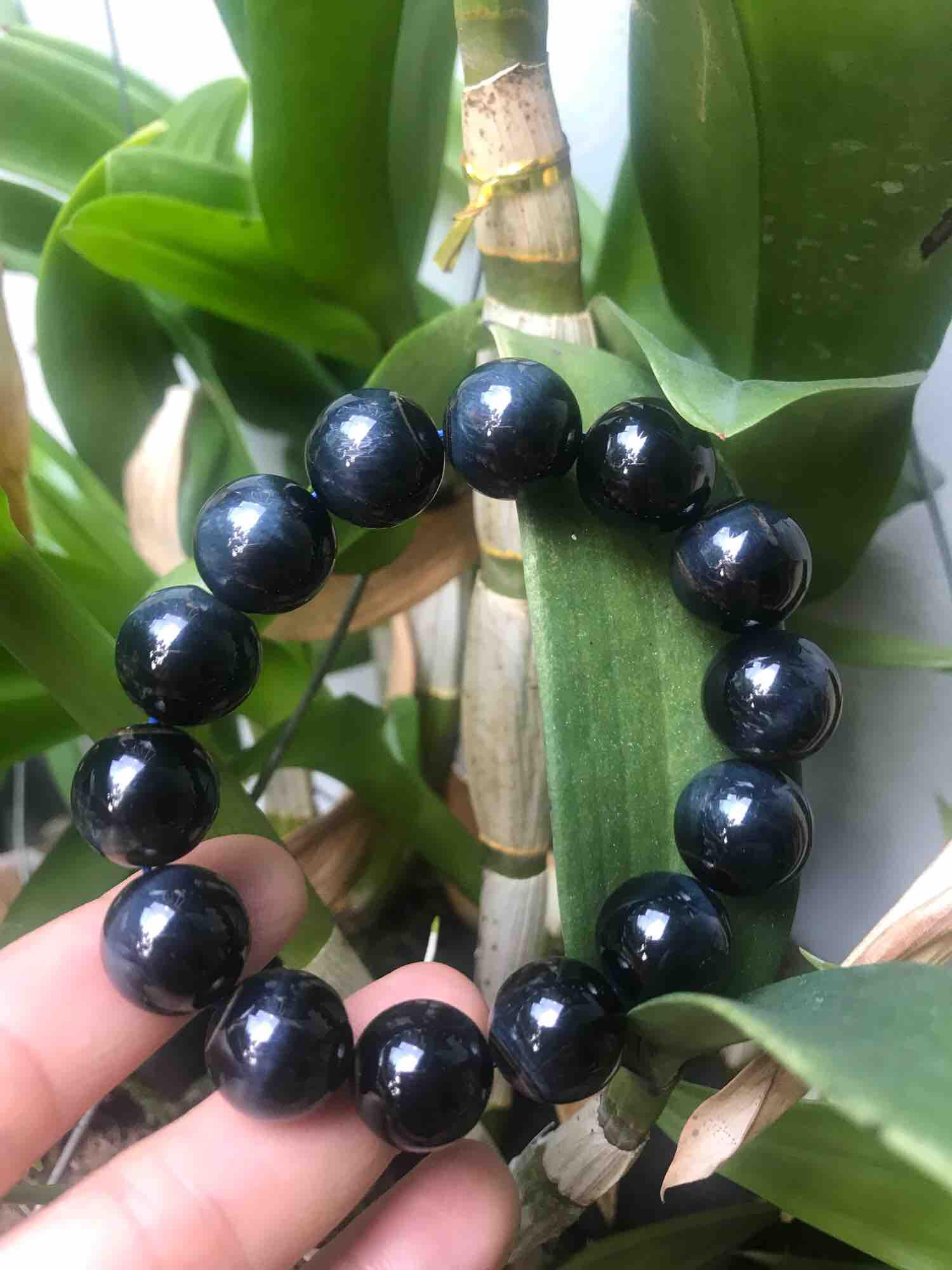 VÒNG TAY ĐÁ ĐEN ÁNH XANH SIZE 14MM CHO NAM