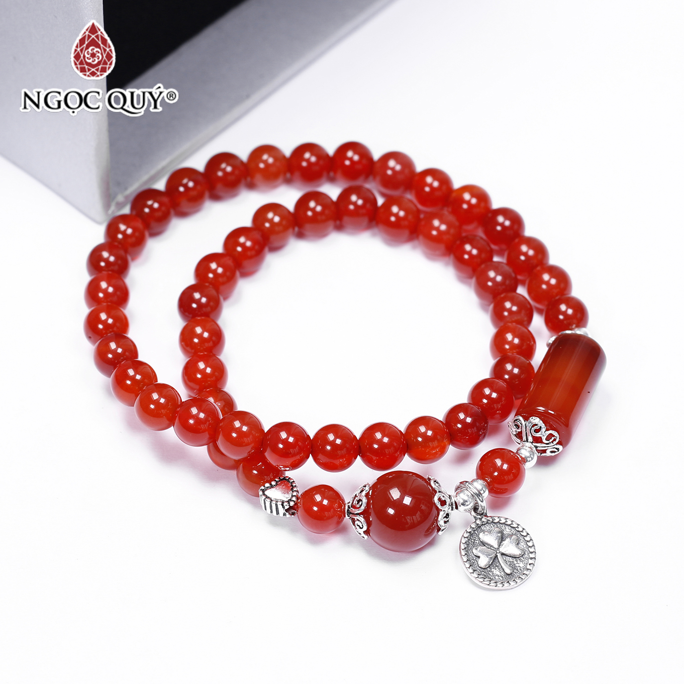 Vòng tay đá mã não đỏ phối charm bạc