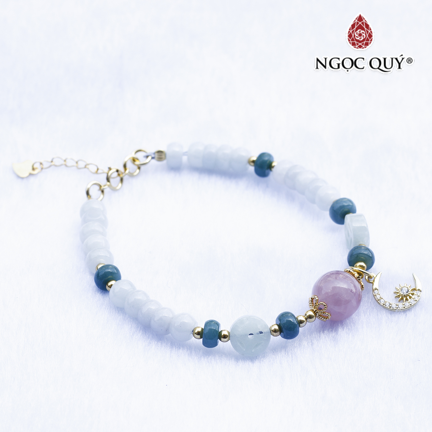 - Vòng Tay Thạch Anh Dâu Mix Tím Ngọc Charm Hoa Mặt Trời Ngọc Quý Gemstones VT109 mang màu hồng nhẹ nhàng, chứa năng lượng bổ trợ mạnh mẽ về tình duyên, cải thiện các