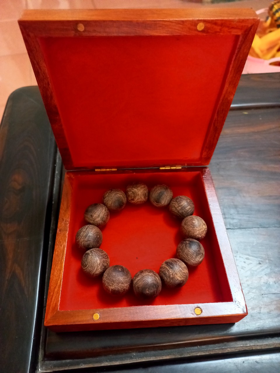 Vòng gỗ sưa đỏ  vòng đeo tay trang sức phong thủy được làm bằng chất liệu gỗ sưa đỏ tự nhiên 100%  Kích thước vòng 20ly + hộp đựng trang sức bằng gỗ hương cao cấp kt 13×13×4cm  _ Vòng gỗ sưa đỏ được gắn kết với phật ,cho nên nó mang tính lành ,Không cần dựa vào cung mệnh ,Tất cả mọi người ai ai ,cũng có thể đeo được ,Ngoài ra vòng gỗ sưa ,còn rất tốt với sức khỏe ,bởi mùi hương thơm lành tính của gỗ ,Giúp hoạt huyết tốt ,cho những người bị tim mạnh ,dạ dầy hay huyết áp cao .Bên cạnh những lợi ích vòng gỗ sưa đem lại về sức khỏe ,nó còn giúp tinh thần thoải mái ,Và là vật phong thủy không thể thiếu ,đối với những người làm ăn kinh doanh ,cũng như quan chức ,và những người có địa vị trong xã hội ,thành đạt ,.Đều muốn sở hữu riêng cho mình một sản phẩm về gỗ sưa ,Đặc biệt vòng đeo tay ,Vì theo quan niệm sưa,cũng như nhiều đời kể lại vòng gỗ sưa nó có tác dụng xua đuổi tà ma ,và những luồng khí xấu ,giúp người đeo an toàn tài lộc may mắn thịch vượng _Hơn thế nữa vòng gỗ sưa rất bền và cứng ,nên bạn có thể đeo thoải mái ,mÀ không sợ vòng bị trầy sước ,sứt sẹo hay mục